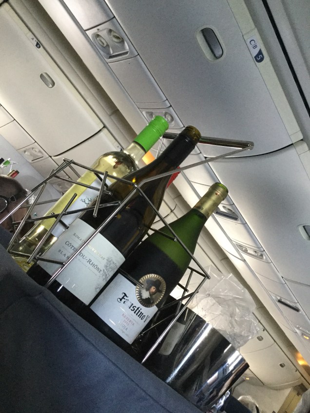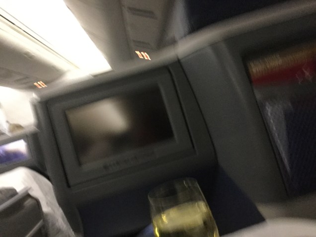 To start the experience you were greeted with a glass of champagne as you boarded the plane then you were directed to your assigned seat. But it’s not just a seat – it’s a pod or something! The seat turns into a bed (totally flat- not just reclining). You have a keyboard of buttons to move in every direction. Plus a back massage that you can continually push if you want.
