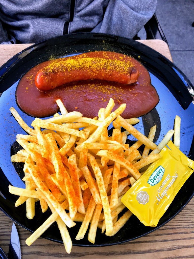 The Curry wurst was good and of course the fries were good, except they eat mayonnaise with their fries, you have to practically beg to get ketchup!
