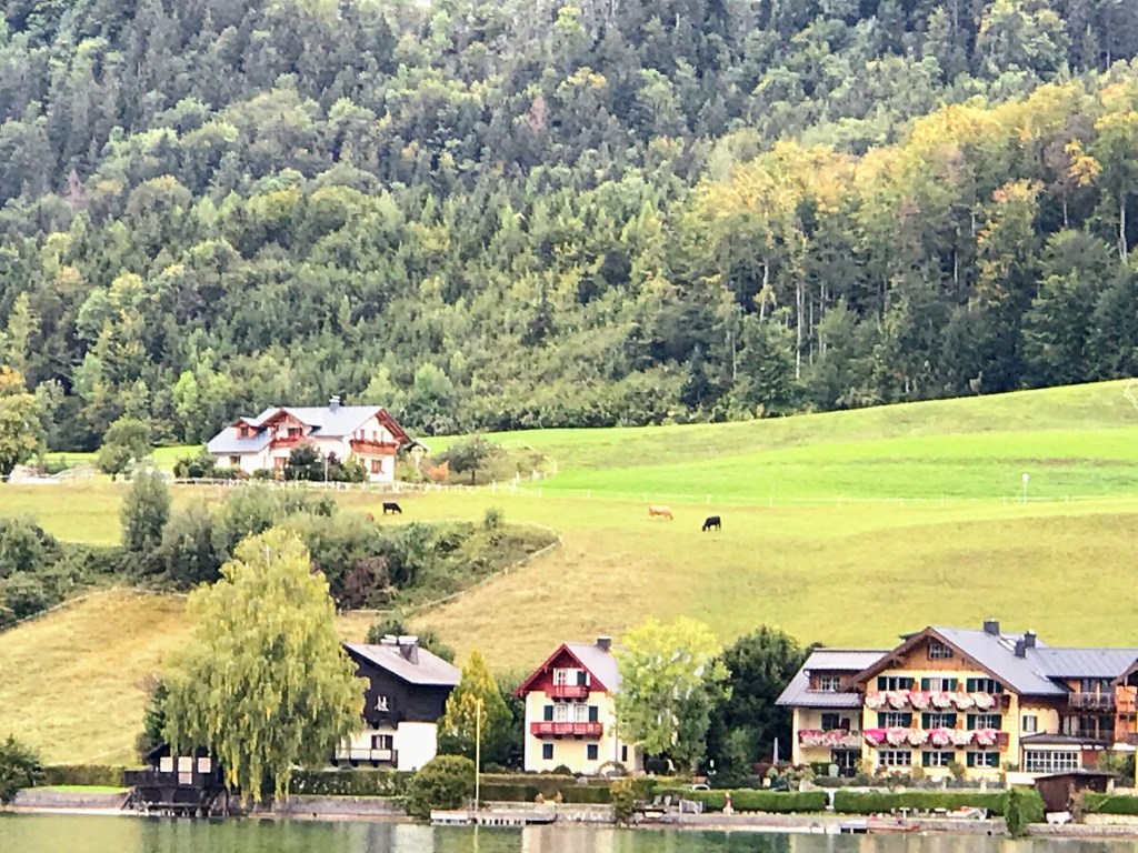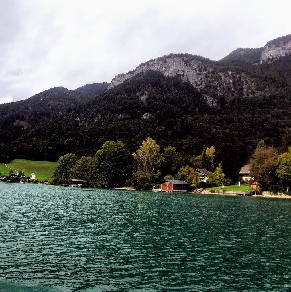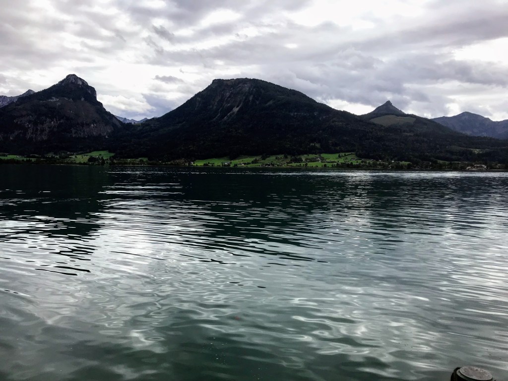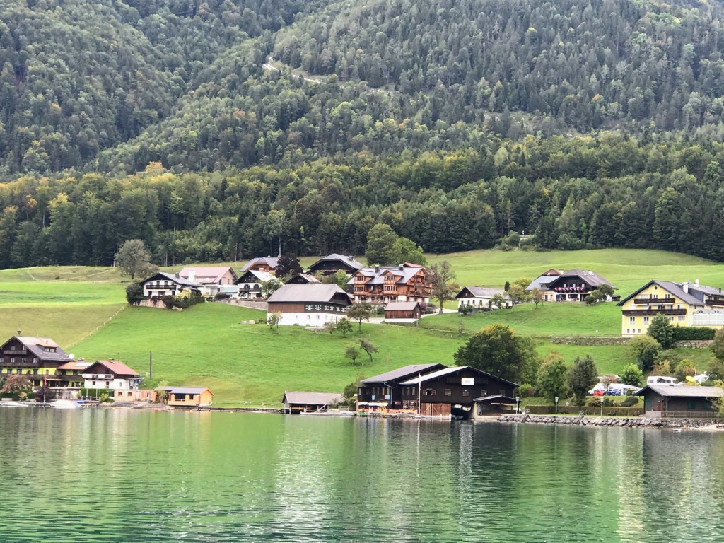 Austria’s Lake District. We took in the beautiful Lower Bavarian Alps as we journeyed south, to the Lake District toward the postcard-pretty town of St Wolfgang. We then became quite amazed at the picturesque mountain scenery on our boat trip on Lake Wolfgang. The small villages were quaintly positioned between the mountains and the lakes. Absolutely beautiful!