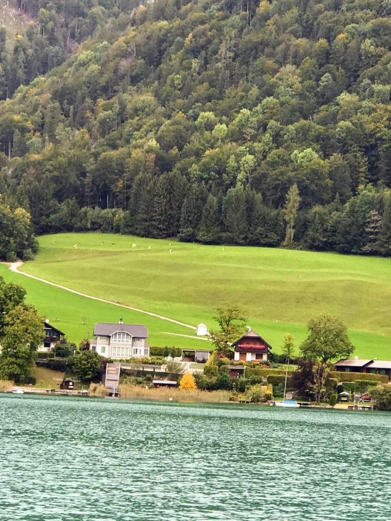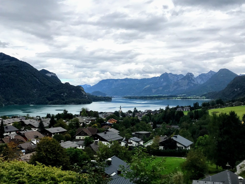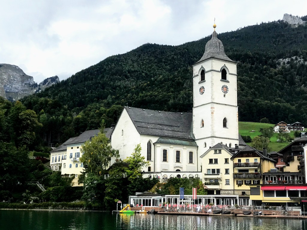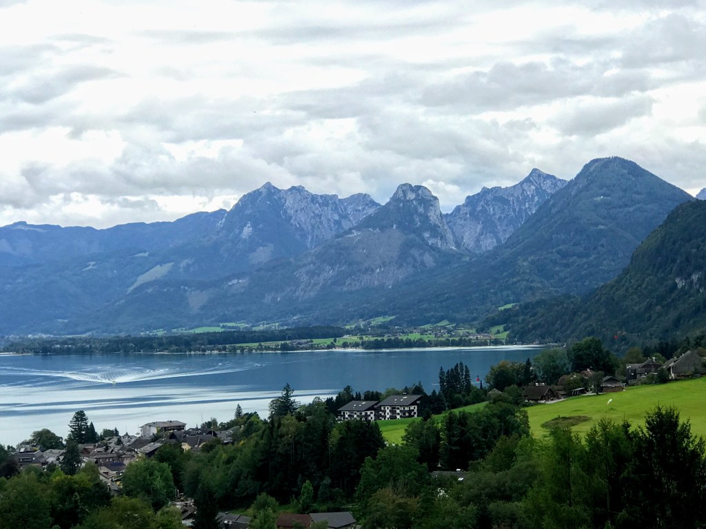 Austria’s Lake District. We took in the beautiful Lower Bavarian Alps as we journeyed south, to the Lake District toward the postcard-pretty town of St Wolfgang. We then became quite amazed at the picturesque mountain scenery on our boat trip on Lake Wolfgang. The small villages were quaintly positioned between the mountains and the lakes. Absolutely beautiful!