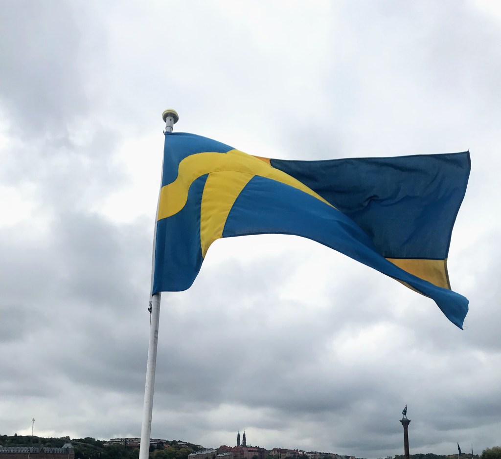 Pic 4 is the Swedish flag; it consists of a yellow or gold Nordic cross on a field of blue. The Nordic cross design traditionally represents Christianity.