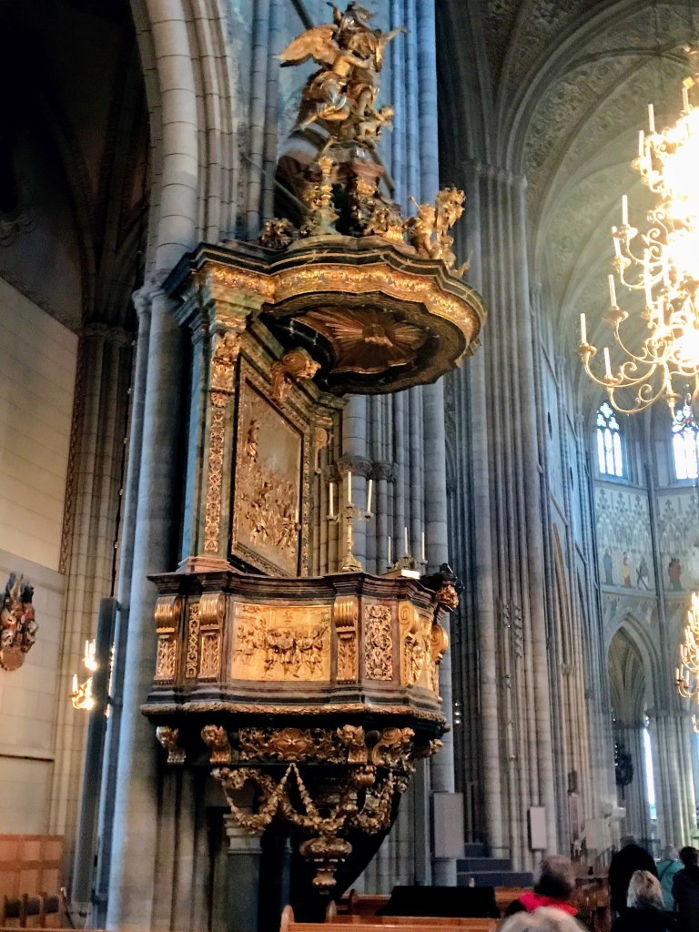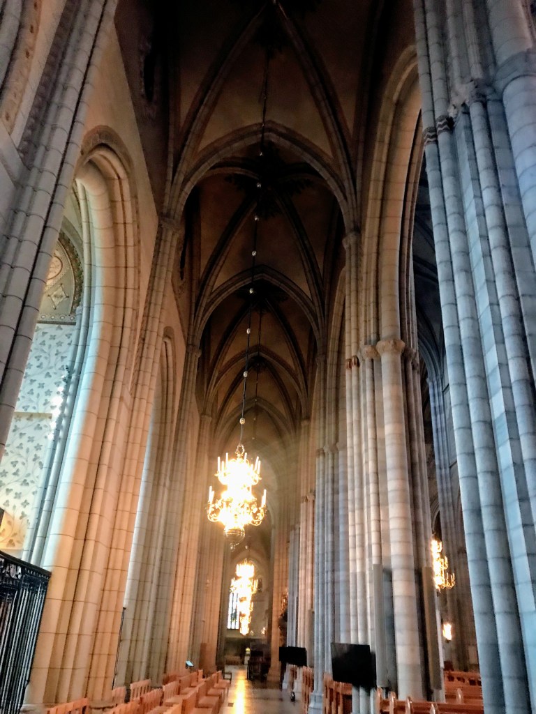 Uppsala Cathedral’s construction began in 1270 as a catholic church. It was built in Gothic Style architecture. Due to lack of funds and inclement weather the construction took a couple of hundred years to complete. In the 1500’s Sweden left the Roman Catholic Church and began as Lutheran. The cathedral houses not only royal tombs, but nobles and scientists too.